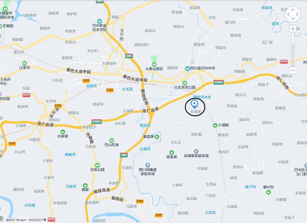 巴中糧食現(xiàn)代物流園區(qū)(巴中市巴中興文經開區(qū)規(guī)劃14路中營村牟家塝),見地圖圓圈位置。